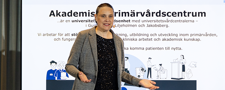 ”Vi stödjer och utvecklar forskning, utbildning och kvalitetsarbete i primärvården och fungerar som länken mellan det kliniska arbetet och akademisk kunskap – så att den når patienten”, sa Jeanette Westman, verksamhetschef vid Akademiskt primärvårdscentrum.